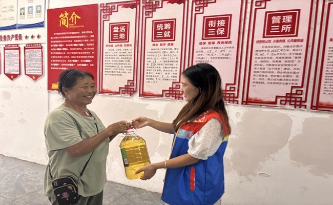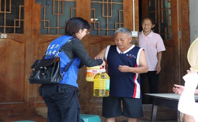 7月11日,党支部小队在太平镇安置区组织并参与了慰问空巢老人和留守儿童的活动。当天,志愿者们共走访慰问了16户家庭,其中包括10户空巢老人和4户留守儿童。志愿者们为16户家庭送去了大米、食用油等生活必需品,并通过开展帮助空巢老人打扫卫生、与留守儿童倾心交谈、普及金融防诈骗知识等活动,了解他们的学习、生活和兴趣爱好,进行心理疏导。通过这些互动交流,志愿者们与受助群体之间建立了深厚的情感纽带。