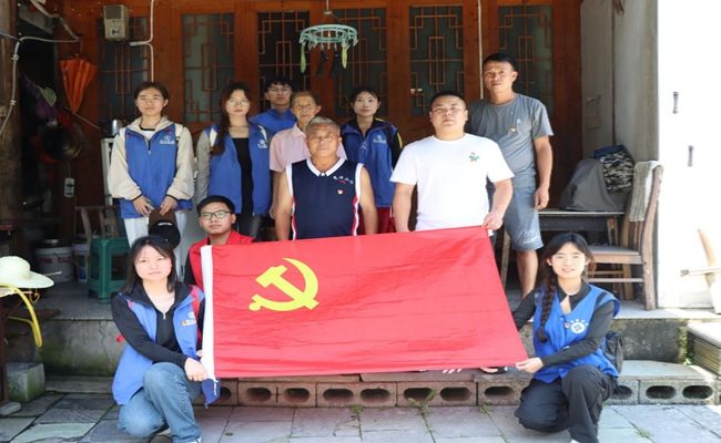 7月9日上午,党支部小队带上物资,出发前往梵净山村村委会。到达目的地后,实践队迅速与村委会进行了工作对接,详细了解了村内老兵和老党员的基本情况。在村委会工作人员的陪同下,小队成员逐一前往村内老兵和老党员的家中进行慰问。此次活动中,实践队共访问了龙祖云、杨发来、龚文献、杨碧昌、夏光普5位老兵和老党员。通过访谈,青年学生们深刻感受到了老一辈对党的忠诚与热爱,了解到了他们为国家和平与发展做出的巨大贡献。老党员们鼓励青年学生,要珍惜眼前的美好时光,勤奋学习、不断提升自我,将来用自己的知识和能力报效祖国,为国家的繁荣富强贡献自己的一份力量。