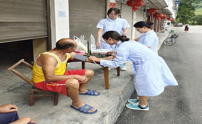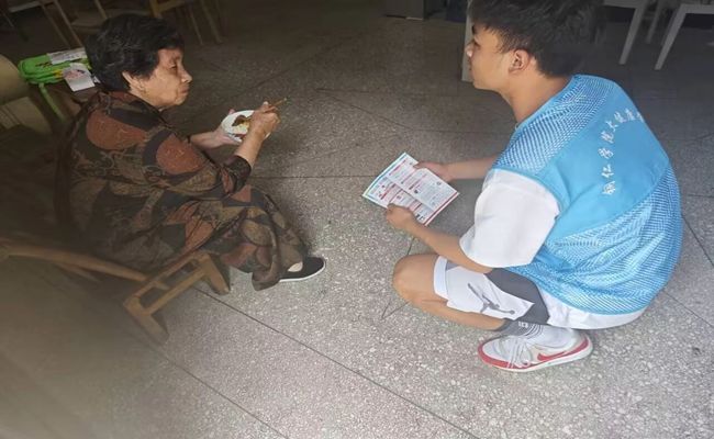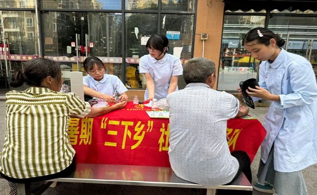 为深入学习贯彻习近平新时代中国特色社会主义思想和党的二十大精神,争做有理想、敢担当、能吃苦、肯奋斗的新时代好青年,近日,由大健康学院10名同学组成的“健康关怀·护航青春”团队在学院领导的支持下,深入漾头镇九龙村以及白岩溪社区开展暑期“三下乡”社会实践活动,向当地居民宣传禁毒防艾知识和提供免费的血压血糖检测服务。