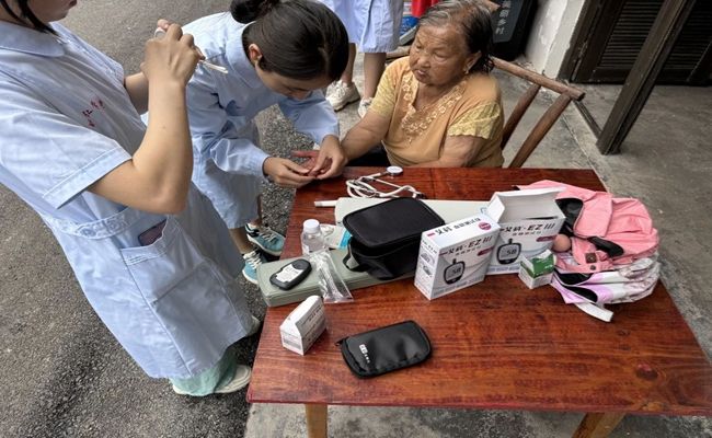此外,他们还详细介绍了如何通过健康的饮食和运动来预防糖尿病和其他慢性疾病。为了更直接地帮助居民们了解自己的健康状况,“健康关怀·护航青春”团队以入户的方式,为当地居民进行血压血糖检测,并为每一位前来检测的居民提供了详细的健康咨询和建议。