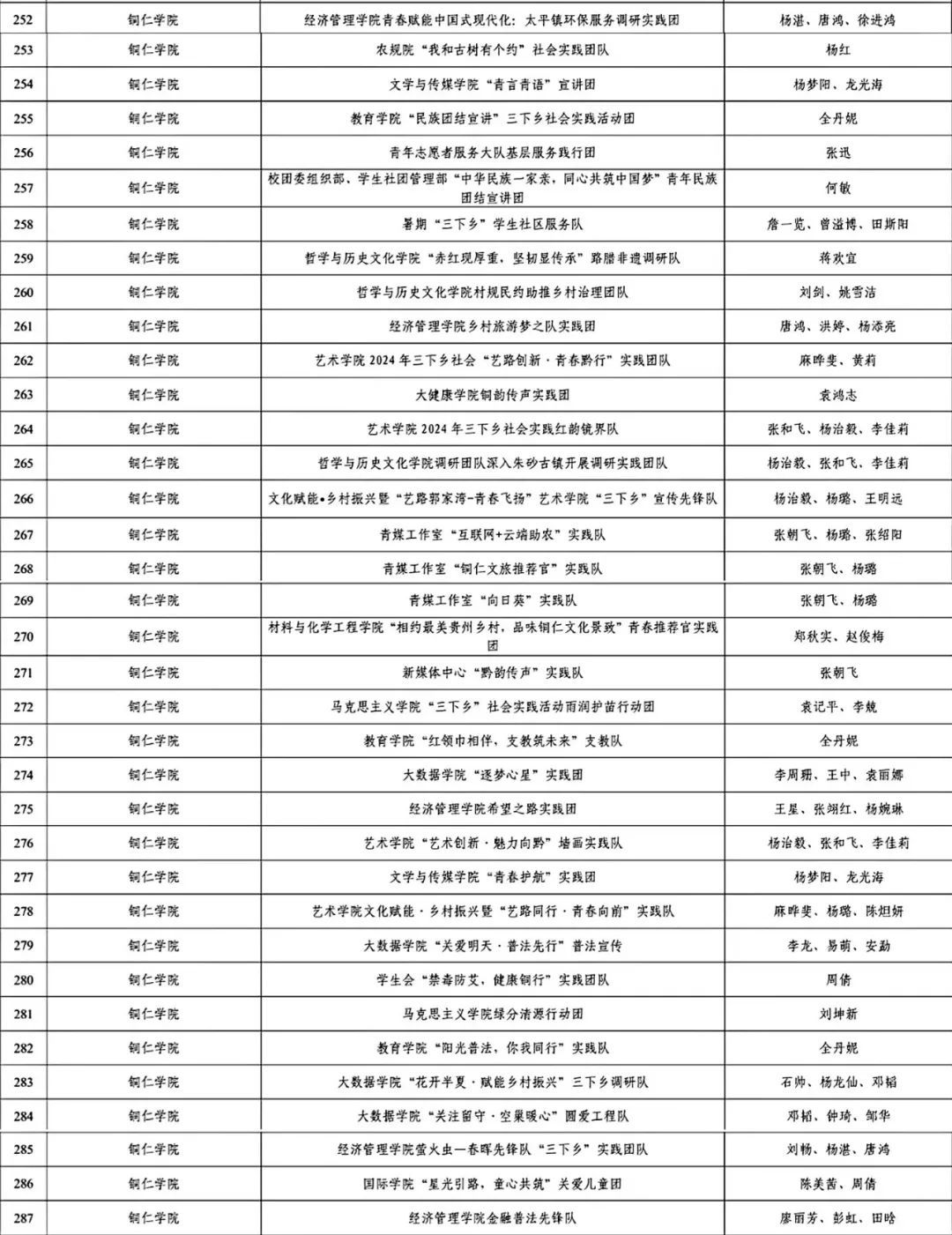自2024年暑期“三下乡”社会实践活动启动以来,在校党委的坚强领导下,在相关部门和学院的通力协作下,校团委充分发挥组织优势,紧紧围绕“青春为中国式现代化挺膺担当”这一主题,聚焦于乡村振兴、国情观察、理论宣讲等领域,精心组建了一百余支实践队,上千名师生充分发挥专业优势,奔赴铜仁市各区县及周边省市的乡村及社区,开展理论宣讲、爱国教育、文化传承、乡村振兴、基层服务、民族团结等主题实践活动,切实落实“社会调查+思政教育”实践育人工作要求,有力推动主题教育入脑入心、走深走实。人民网、中国青年网、贵州新闻联播、天眼新闻、多彩贵州网等媒体对开展的系列活动进行了宣传报道,赢得了社会各界广泛关注和高度评价,取得了良好的实践效果。