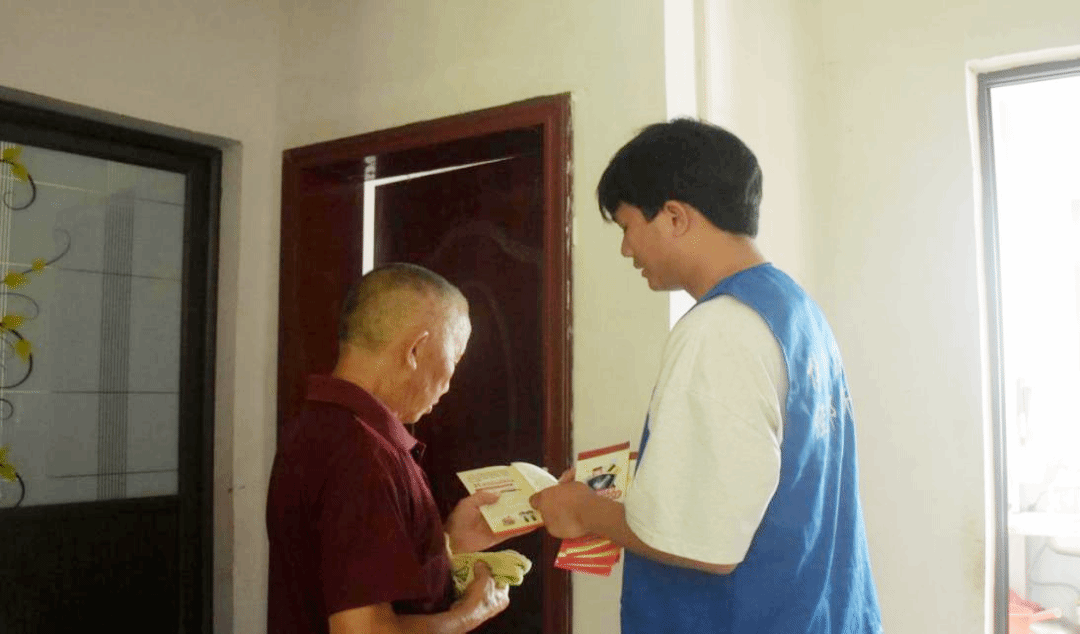 (2024年7月9日,经济管理学院“金融普法”实践团志愿者向孤寡老人发放宣传手册)