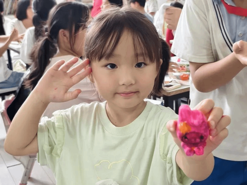 拿到心仪的石膏娃娃后,孩子们拿起五彩颜料兴致勃勃地为娃娃上色,过程中不时向队员们请教:“老师,粉色怎么调?”“老师,有清水洗笔吗?”“老师,还能再画一个吗?”完成创作的孩子纷纷手持作品合影,队员们现场将拍摄的照片打印出来,用相框裱好赠送给孩子们。