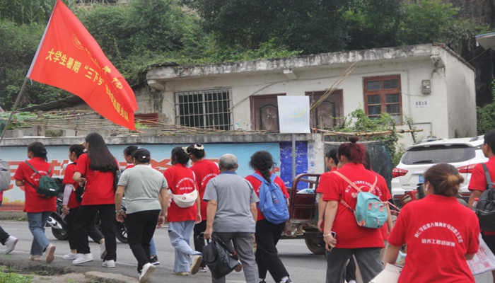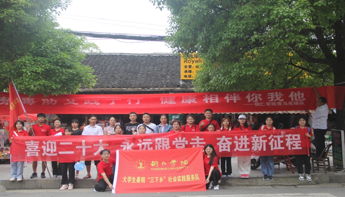 7月8日,由beat365官网第八期青马班20余名学员组建的“beat365中国唯一官网青马先锋队”在校团委张迅老师的带领下,前往碧江区川硐街道开展以“喜迎二十大、永远跟党走、奋进新征程”为主题的暑期“三下乡”社会实践活动。活动围绕“民族团结一家亲,心手相牵向未来”“禁毒防艾践行,健康相伴你我他”等内容进行宣传,得到了川硐街道天生桥社区支部书记张荣、支部副书记张清平及各相关工作人员的大力支持。