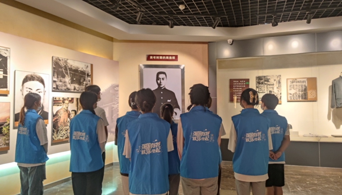 在中南门周逸群烈士陈列馆参观时,讲解员向宣讲团成员介绍优秀的中国共产党党员、早期杰出的无产阶级革命家周逸群烈士的生平事迹。