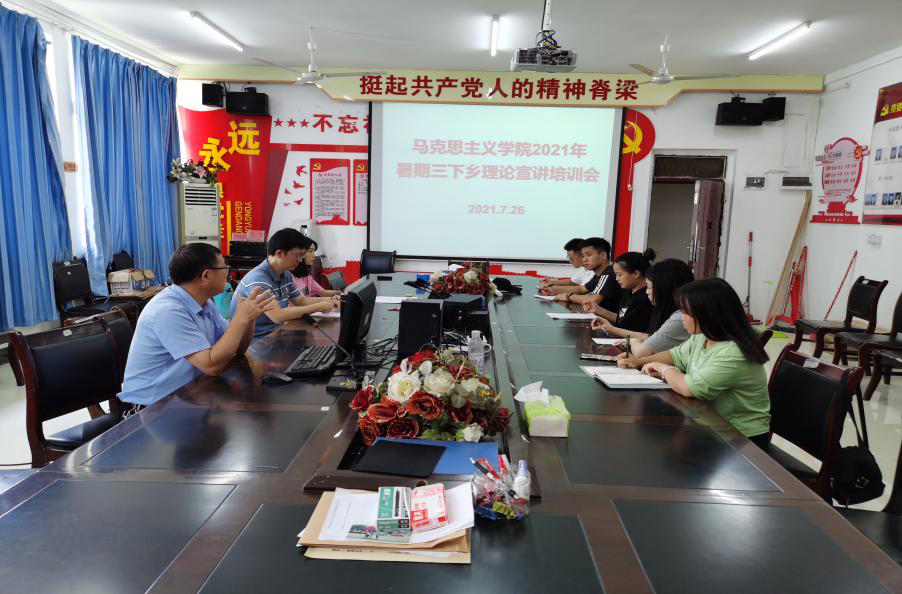 7月26日上午,马克思主义学院在依仁楼A二楼会议室召开2021年暑期三下乡理论宣讲培训会,会议由院党委书记、院长皮坤乾主持,暑期三下乡理论宣讲团成员参会。