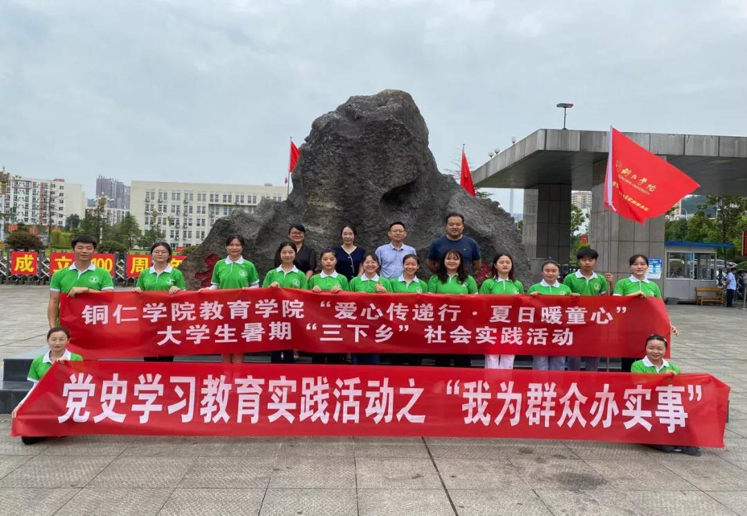 2021年7月22日,beat365中国唯一官网教育学院组织开展了党史学习教育“我为群众办实事”暨“爱心传递行•夏日暖童心”大学生暑期“三下乡”社会实践活动出征仪式。校党委委员、统战部部长刘德平、教育学院分党委副书记胡慧、学生科科长龙兴林、团总支临时负责人钱丽红出席出征仪式。