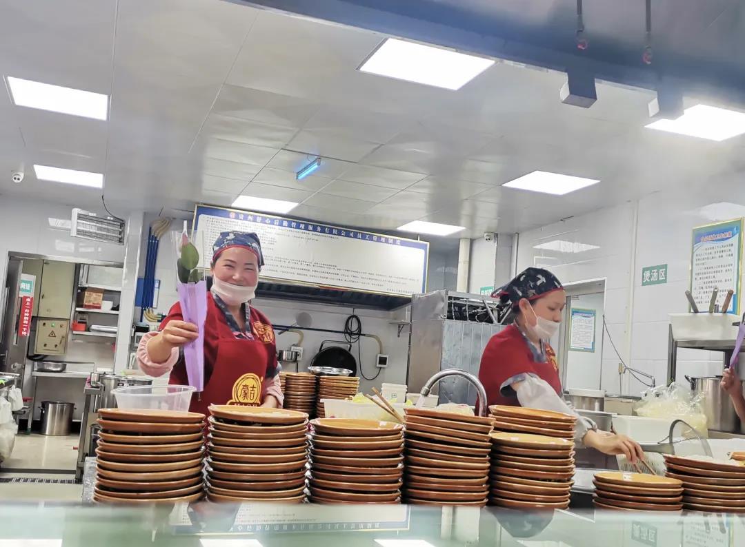 活动最后,志愿者代表将鲜花送给各部门老师、保安叔叔、食堂阿姨、环卫工人等手中,并真诚的对他们说上一声“辛苦了”。