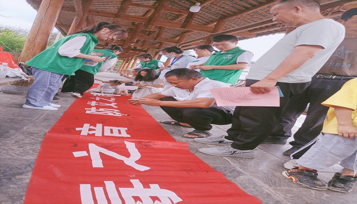 防艾之声 传行万里”横幅上进行签名活动,以表达“禁毒防艾”之决心。“禁毒”“防艾”这一活动亦让当地村民学习了解了“禁毒防艾”知识的同时播种“禁毒防艾”种子,提高了“禁毒防艾”意识,为打造绿色无毒无艾乡村健康幸福生活、建设美丽绿色无毒无艾乡村提供了理论基础。