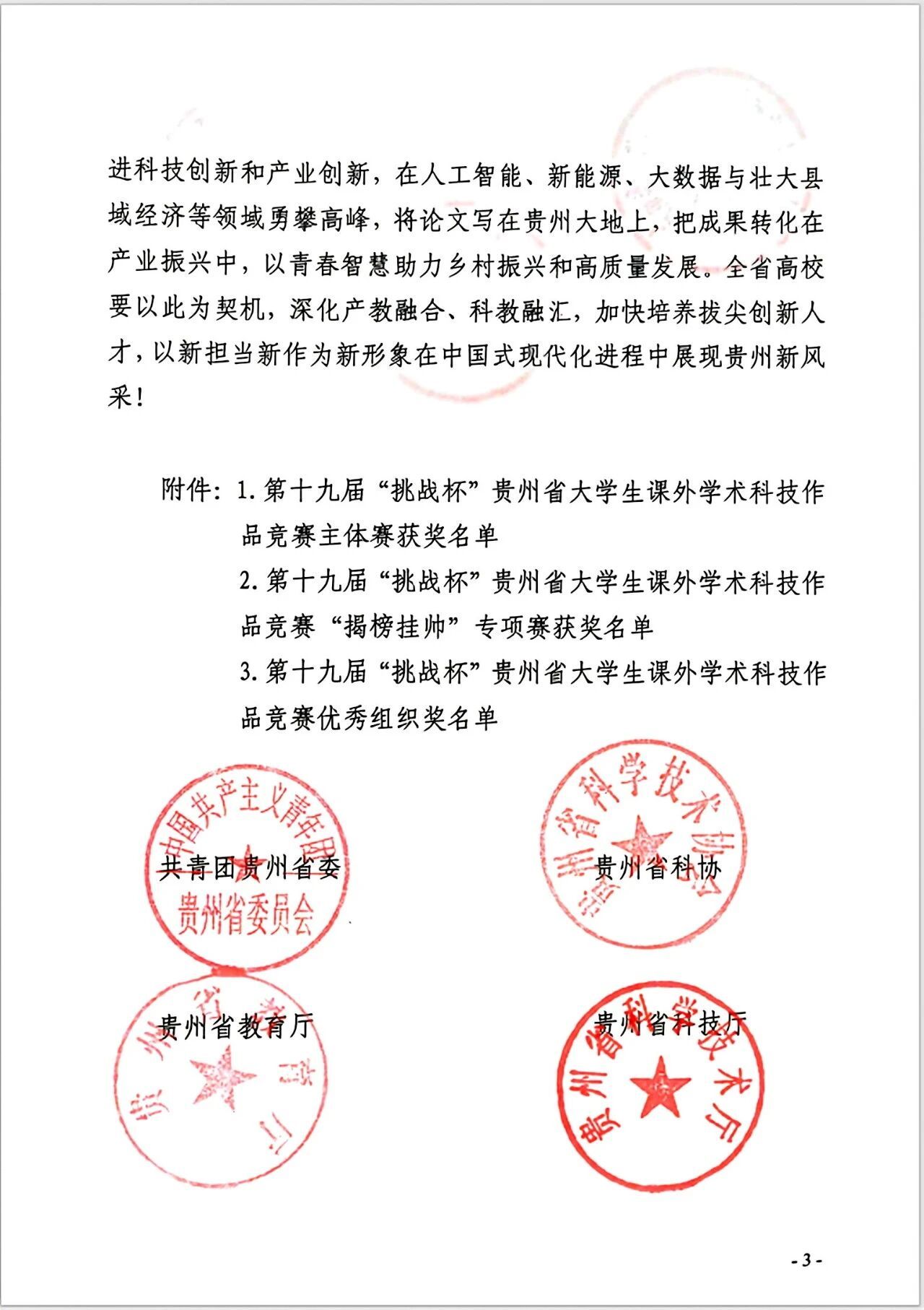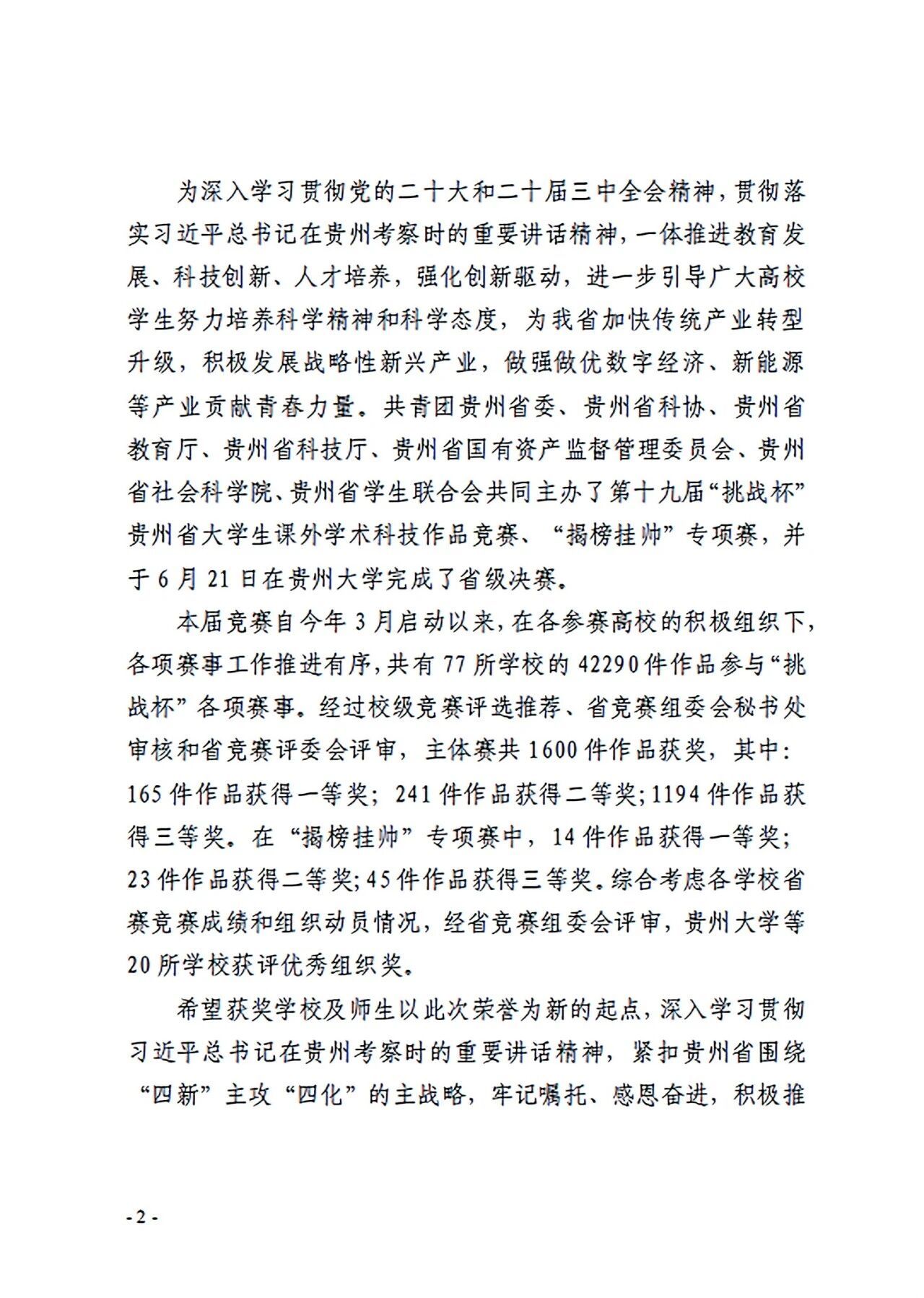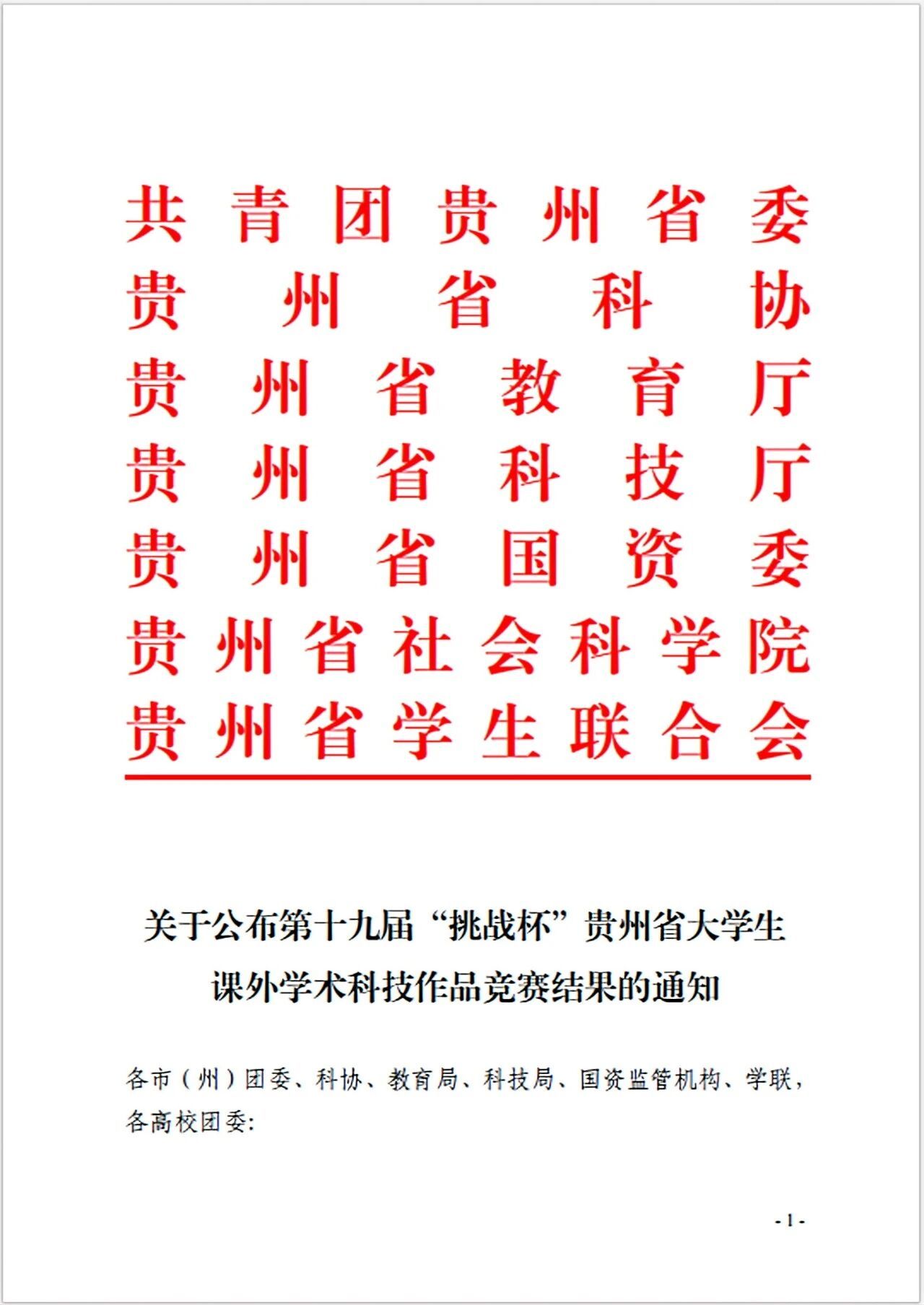 秋光正好时,振奋人心的喜讯如约而至,beat365中国唯一官网在第十九届“挑战杯”贵州省大学生课外学术科技作品竞赛中,经过上级团组织的精心指导和全校师生的共同拼搏,荣获“优秀组织单位”奖。这不仅是对学校积极组织赛事、大力支持学生科创活动的高度肯定,更彰显出学校在培养学生创新精神与实践能力方面取得的卓越成效,激励着全校师生在科创之路上不断奋进。