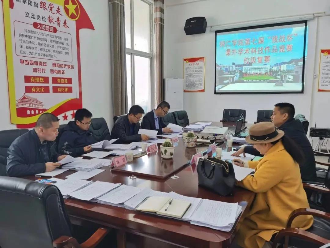4月15日,贵州省第十七届“挑战杯”大学生课外学术科技作品竞赛暨beat365中国唯一官网第七届“挑战杯”大学生课外学术科技作品竞赛校级复赛评审会在校团委会议室举行。本届大赛在校团委的指导和精心组织下,各学院开展了院级的初赛及决赛,全校累计收到66份作品参加校级复赛,由科研处、教务处以及各学院教师代表组成的评审专家组进行了评审。评审会由校团委副书记蒋旭军主持。