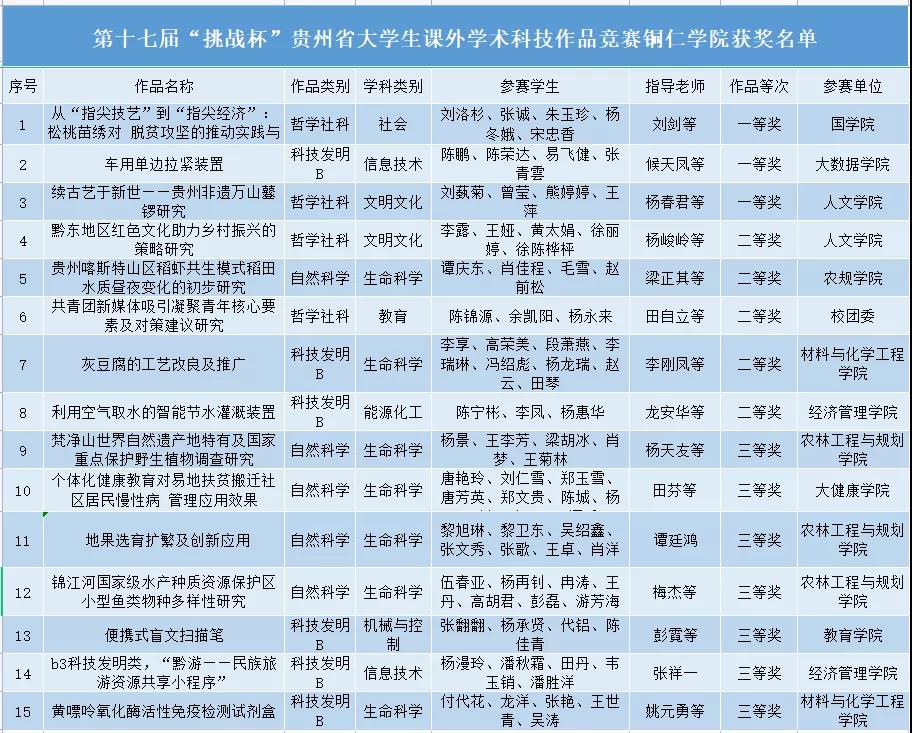 第十七届“挑战杯”贵州省大学生课外