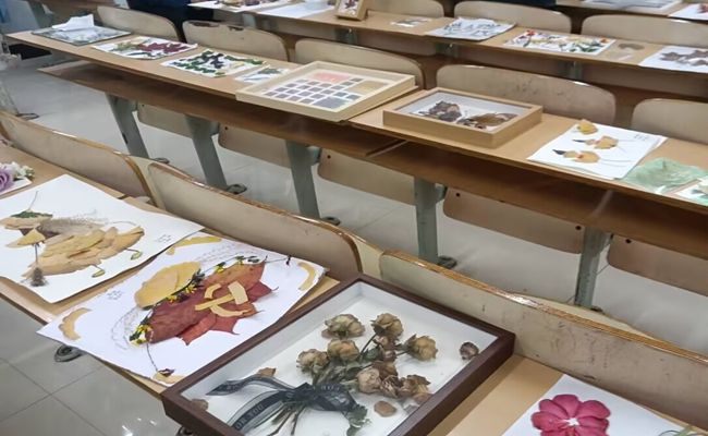 活动正式开始后,同学们满怀热情积极踊跃地参与其中,充分利用课余闲暇时间,穿梭在校园的各个角落,精心寻觅独特的植物素材。无论是花园内娇艳欲滴的花朵,草丛中形状千奇百怪的叶片,还是树林里独具特色的果实,皆被同学们视作珍贵的 “宝藏”。值得一提的是,有相当一部分同学突破校园的界限,前往郊外旷野、专业植物园等地方,只为获取更为稀有、新颖的植物来制作标本。在制作过程中,大家更是各显神通,依照标本制作的标准流程,细心处理植物材料,或压制,或风干,而后巧妙地进行布局设计、粘贴整合以及精准标注,每一步都尽显专注与专业,将植物原本的风貌栩栩如生地呈现于展板之上。