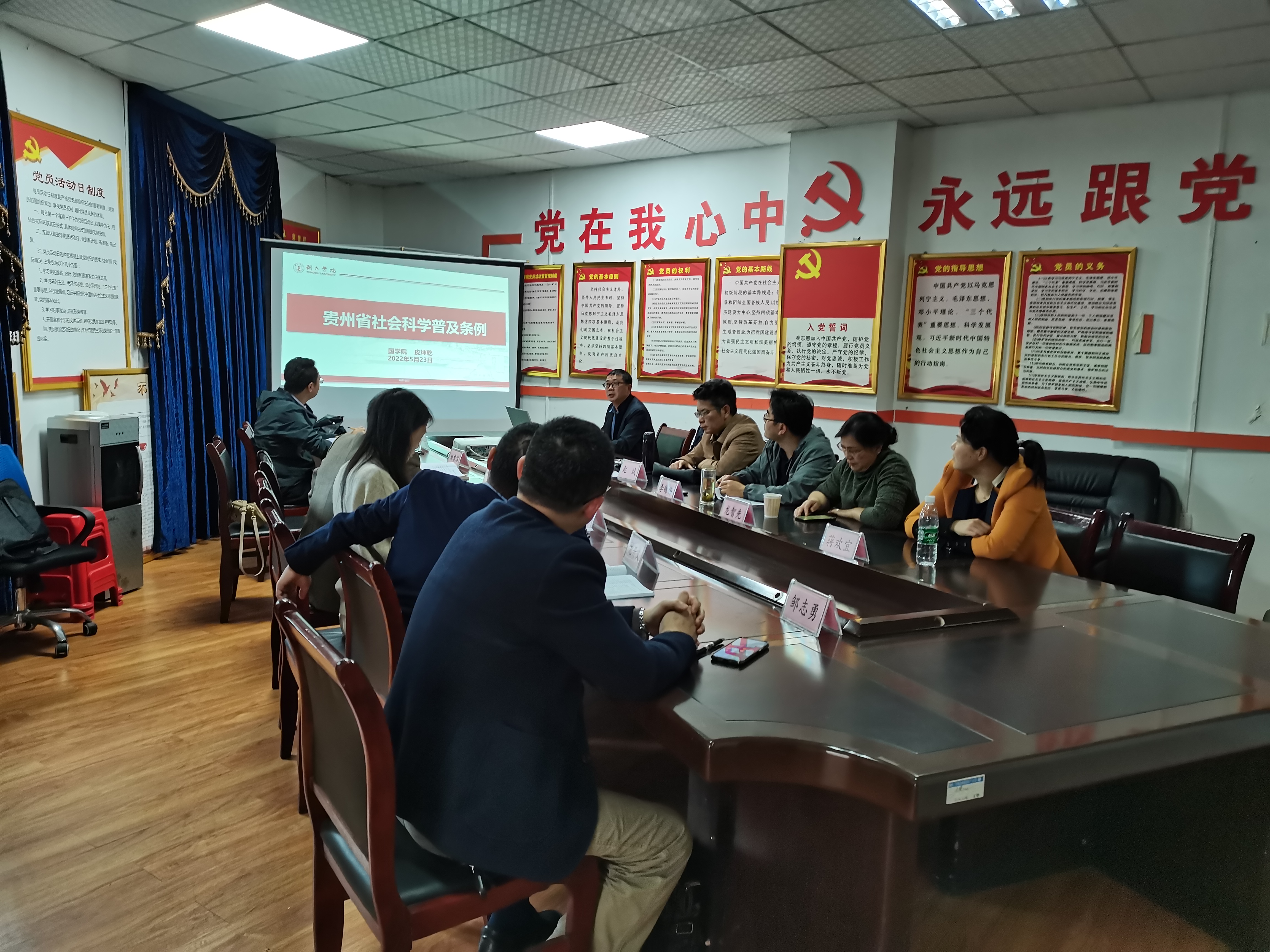 为全面深入做好《贵州省社会科学普及条例》宣传解读贯彻工作,持续深入推进社会科学宣传普及活动,进一步传播人文社科知识,持续巩固省级人文社科示范基地武陵民族文化研究中心建设成果。5月23日下午,我院党总支书记、三级教授皮坤乾在会议室宣讲《贵州省社会科学普及条例》。国学院全体教师参加。