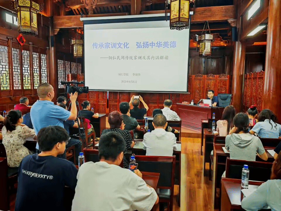 为深入挖掘地方家训文化中的民族团结基因,推动中华优秀传统文化与民族团结教育深度融合,2025年6月8日,我院李锦伟教授应铜仁市委宣传部邀请,走进梵净文化讲堂,以“传承家训文化 弘扬中华美德”为主题,带来了一场兼具理论深度与实践温度的专题讲座。