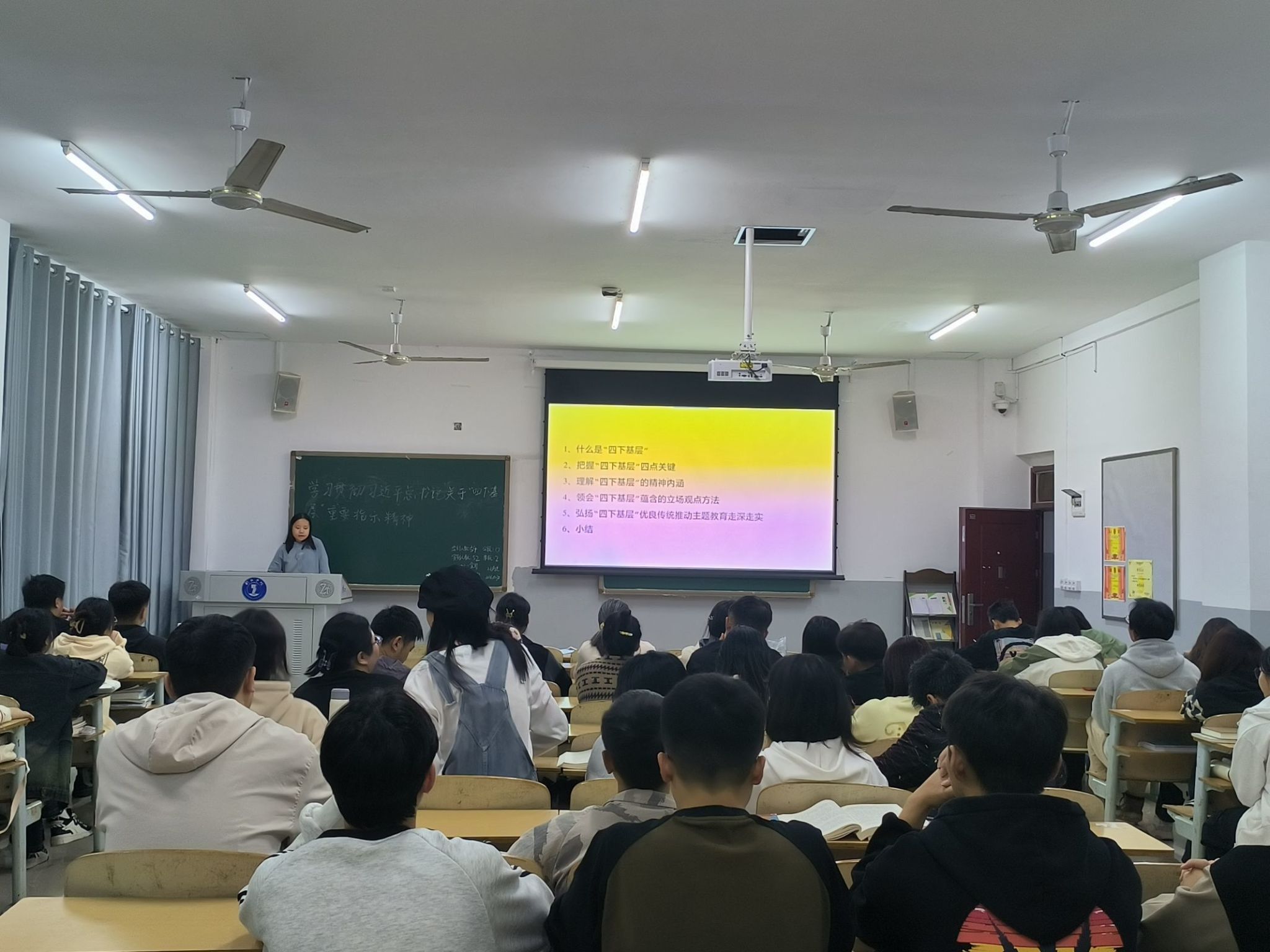 10月30日晚,我院各班于依仁楼A组织召开了“勤俭节约,劳动光荣”和“学习贯彻习近平总书记关于‘四下基层’重要指示精神”两个主题班会。我院各班围绕主题开展了学习。2022级宣讲员利用多媒体向同学们讲解勤俭节约的重要性:美德不管是对于个人,还是家庭,或是国家,这个美德都有相当重要的意义。我们的生活应该提倡节约,不仅仅是为了我们自己,更是为了这个国家,这个民族。也通过举例劳动光荣的事例鼓励我们向先辈们学习劳动最光荣。2023级宣讲人通过播放视频的方式详细地讲述了“四下基层”就是宣传党的路线、方针、政策下基层,调查研究下基层,信访接待下基层,现场办公下基层。它体现了实事求是的思想路线,要求我们必须坚持一切从实际出发,也体现了解决矛盾问题导向,要求我们必不断提升解决同题的能力和水平。通过这次班会,不仅让同学们认识到作为当代大学生树立勤俭节约意识的重要性,还明白“四下基层”对国家发展的至关重要。