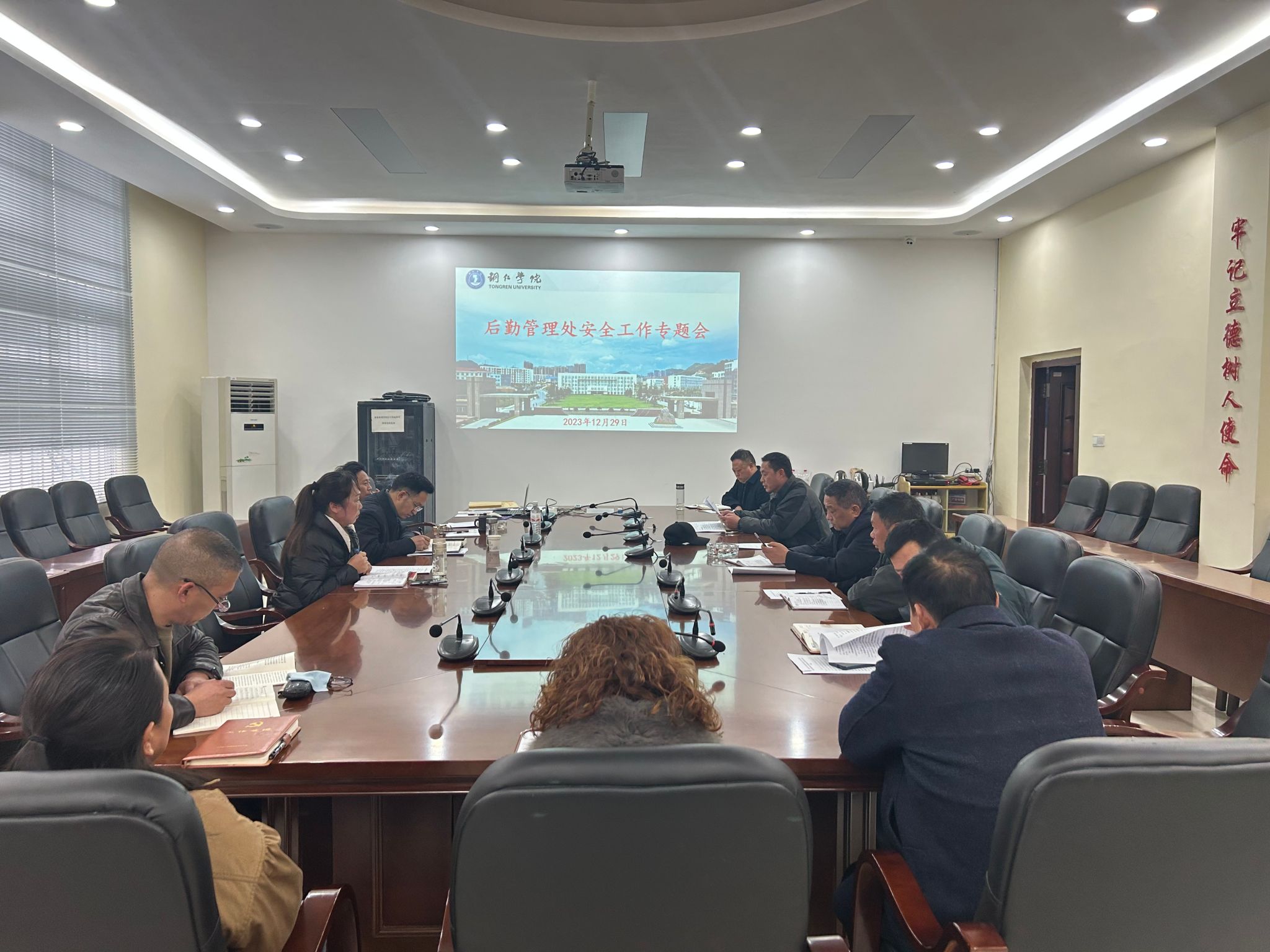 2023年12月29日,后勤管理处召开安全工作会议,对近期安全工作进行安排部署。后勤管理处处长鲁道旺主持会议,后勤处全体教职工参加会议。
