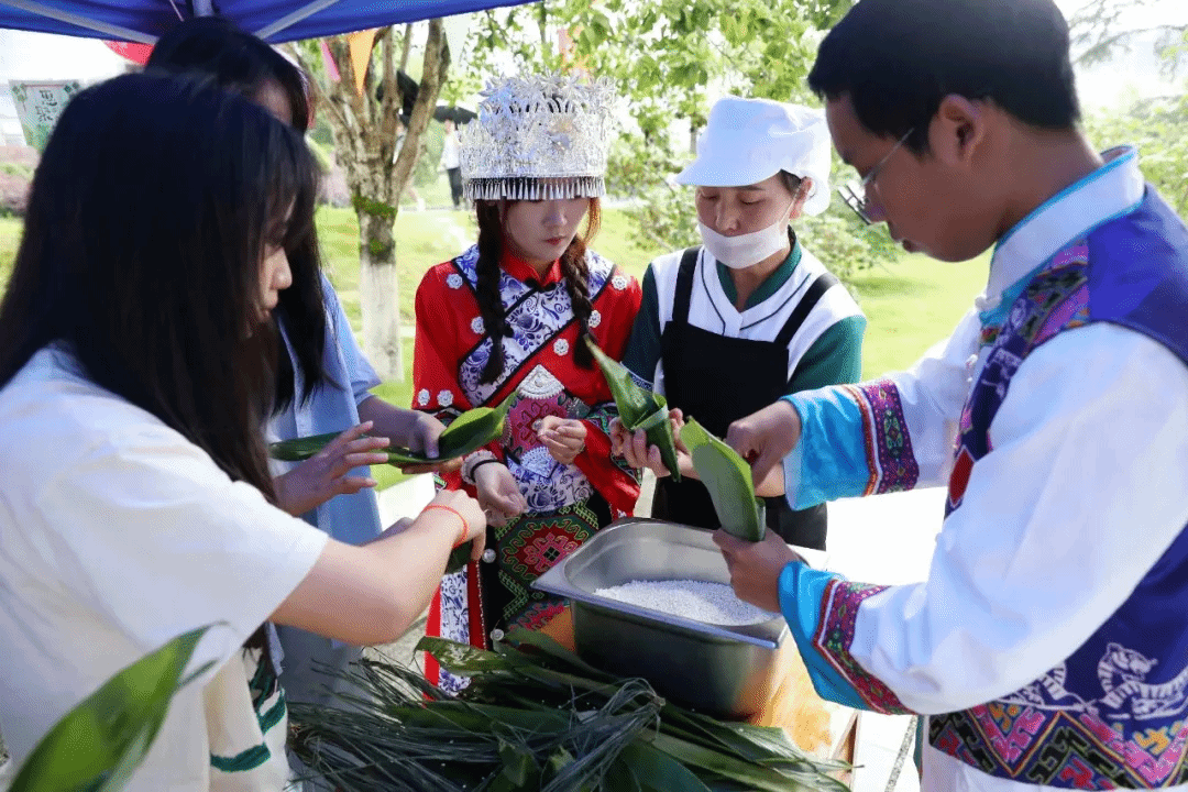 “这样才能包出好看的形状。”“这样才能把绳子扎得更紧,煮的时候不容易露馅。”在包粽子体验现场,经验丰富的食堂阿姨边包边向同学们传授经验。来自铜仁几所高校的外国留学生,也纷纷加入到活动中,与中国学生一起,学习包粽子,体验端午节文化,感受中华优秀传统文化的魅力。大家看着一个个包好的粽子,喜笑颜开,欢声笑语不断。每一颗粽子,都承载师生着对历史的敬畏、对文化的热爱和对未来的期待。