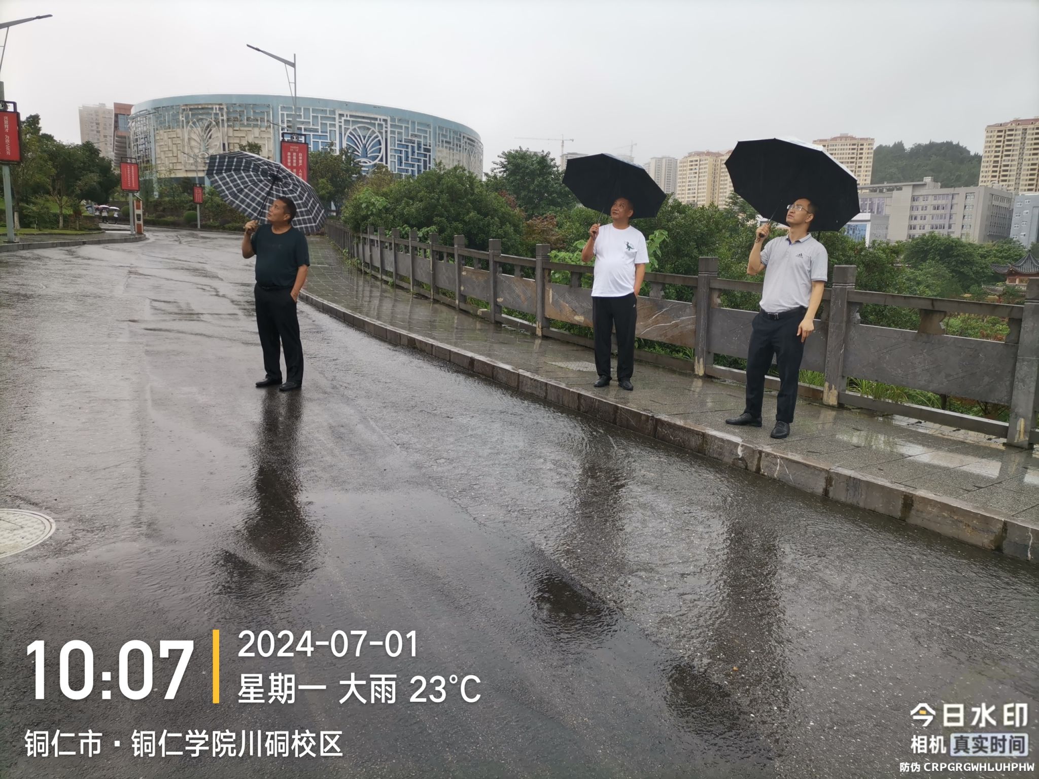 近日,我市境内普降大到暴雨,为切实做好学校防汛工作,确保校园平稳度汛,7月1日上午,后勤管理处组建防汛巡查工作组,后勤处班子成员、第九党支部支委成员和相关科室负责人开展校园汛期安全隐患排查和应急处理工作。
