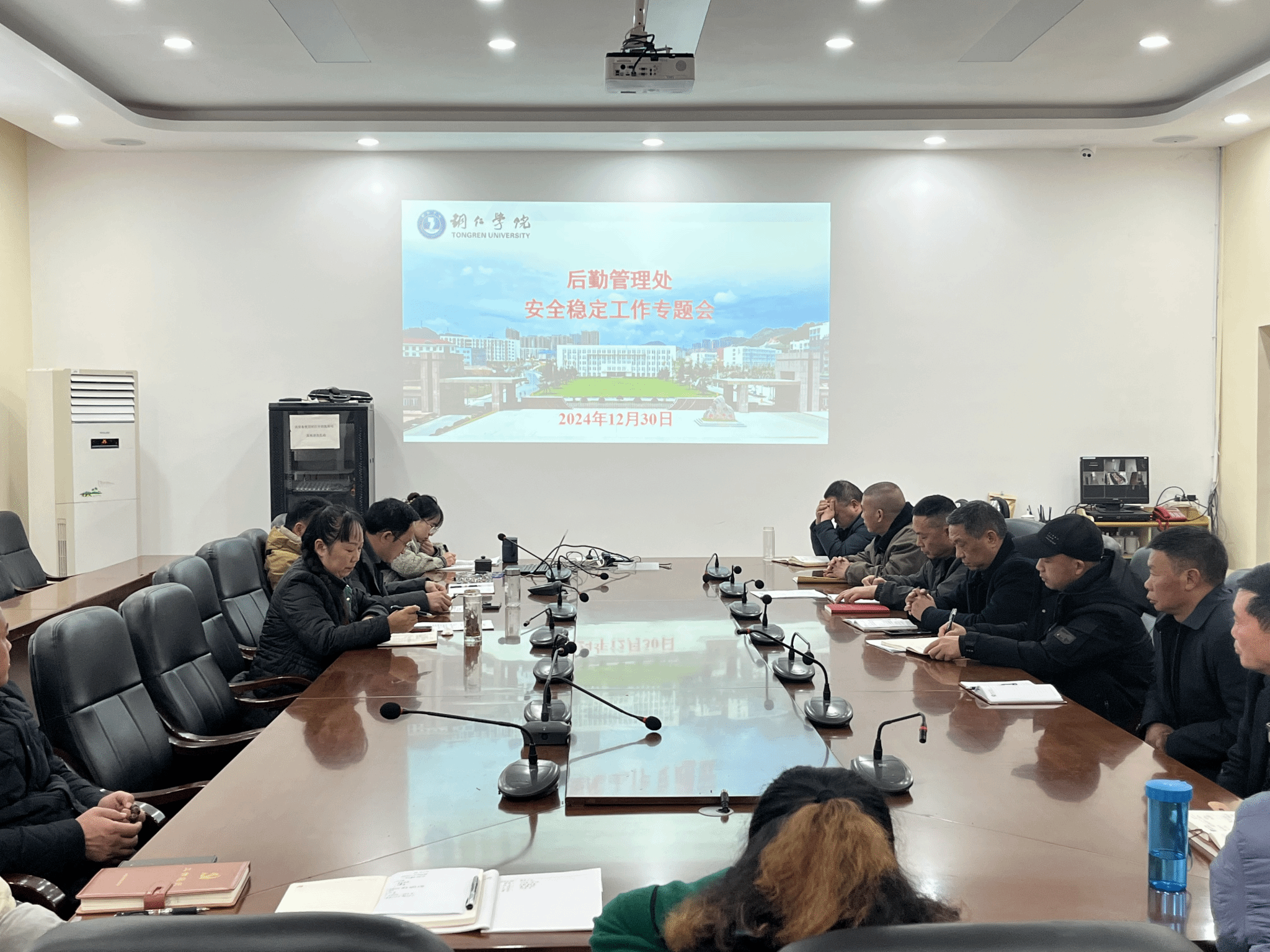 2024年12月30日,后勤管理处召开安全工作会议,对近期安全工作进行安排部署。后勤管理处处长鲁道旺主持会议,后勤处全体教职工参加会议。