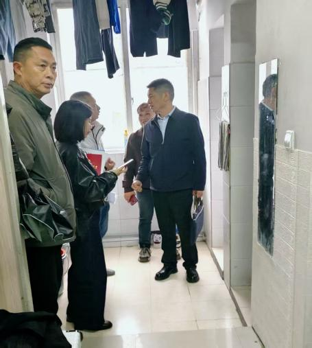 考察组首先来到学生宿舍,实地查看冲厕管道改造情况,详细了解改造后的实际效果和节水成效。随后,考察组前往学院合同节水管理项目中的雨水收集点及水处理系统安装施工现场,认真调研施工进展、技术应用以及质量把控等方面的情况。