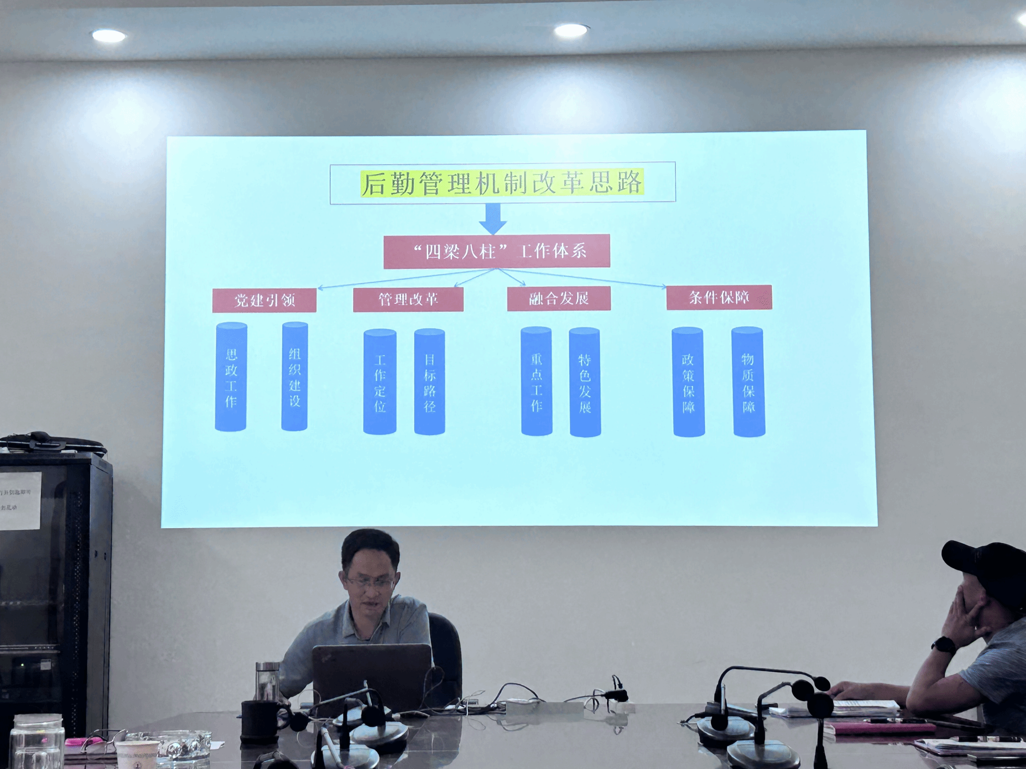 鲁道旺紧扣党课主题,围绕党的二十届三中全会的基本情况、推进中国式现代化进一步全面深化改革的重要性和必要性,以及《决定》的重大改革举措等方面进行深刻阐述,引导全体党员同志深刻领会和把握《决定》提出的进一步全面深化改革的主题、总目标、重大原则、重大举措、根本保证,读懂其中蕴含的内在逻辑和有机关系,并结合后勤工作实际,围绕“四梁八柱”工作体系对后勤管理机制改革思路进行了详细讲解。