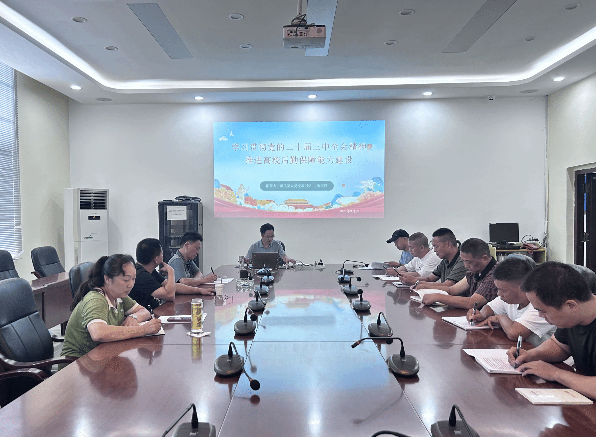为深入学习贯彻党的二十届三中全会精神,把党中央全面深化改革的重大决策部署转化为推动学校高质量发展的强大力量。2024年9月29日,beat365中国唯一官网机关第九党支部书记鲁道旺以《学习贯彻党的二十届三中全会精神 推进高校后勤保障能力建设》为题,为支部全体党员讲授学习贯彻党的二十届三中全会精神专题党课。