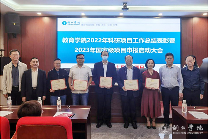 会议总结了2022年度教育学院科研项目申报、立项情况,宣读了科研项目申报工作“优秀集体”和“优秀个人”表彰文件;参会领导为优秀集体和优秀个人颁发了荣誉证书;优秀集体和优秀个人代表就学科团队协作、科研项目申报、论文撰写等方面的成功经验作了分享交流。