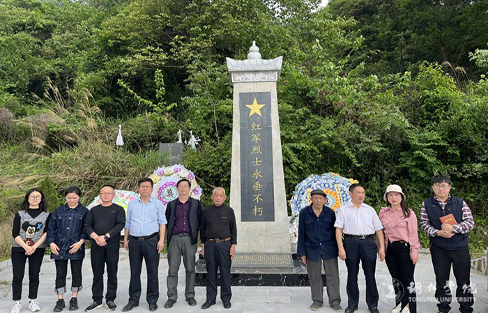 接着,课题组沿着红军当年的足迹重走红军路,来到石阡县本庄镇乌江的葛闪渡码头,感受当年红军突围受阻的艰辛。随后,课题组走访了包溪红庙。包溪红庙,原称为关帝庙,因檐柱为红色,并且红军在此处打了胜仗,而改名为红庙,也正是这次伏击战的成功,给红军增加了信心。到达红庙后,课题组聆听当地老人讲述红军的故事,并到红军纪念碑和红军烈士墓缅怀先烈。