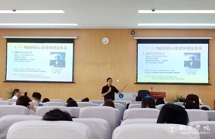于占元教授和大家分享了TRIZ理论及推广应用,围绕如何做好TRIZ创新方法的宣传推广、大赛的组织和创新方法培育,构建创新创业类课程,将创新方法融入教育教学和科学研究全过程,培养老师和学生的创新思维、创新意识和创新精神,提升学生创新创业能力和综合素养等方面进行了阐述。他还从TRIZ的核心思想和理论体系、解决问题的一般模式和流程、解决问题案例介绍以及企业如何推广应用TRIZ方面,为参会人员作了培训,指导大家如何用TRIZ创新方法分析问题和解决问题,解决生产和生活中的实际问题。