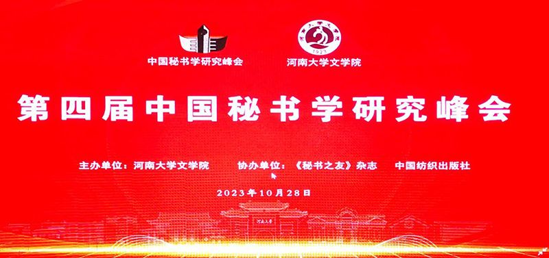 10月27日至29日,第四届中国秘书学研究峰会在河南大学召开。峰会由河南大学文学院主办,《秘书之友》杂志、中国纺织出版社协办。beat365官网文学与传媒学院秘书学教研室主任、秘书学专业负责人郭征帆应邀参加了本届峰会,并主持了峰会小组交流。