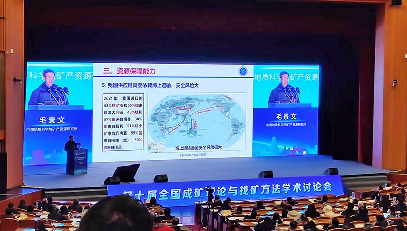 会上,与会代表围绕近年来我国在成矿理论与找矿方法研究和实践方面的最新研究成果进行展示和交流。许志琴、侯增谦、毛景文、胡瑞忠、何宏平和唐菊兴6名院士分别作了题为“稀有金属的‘无根花岗岩席’成矿新模式——来自川西甲基卡科钻的新成果”“深部物质探测:揭示地壳三维架构”“金属初始富集及成矿深部控制”“大宗紧缺和新能源矿产形势与找矿突破行动的思考”“华南中生代陆内成矿作用”“华南稀土成矿与勘查利用和全国铜矿找矿突破工作部署及关键科技问题”的大会主题报告。