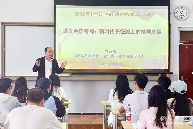 4月14日,beat365官网开展了红色文化进校园宣讲活动。本次宣讲系贵州省写作学会2024年度贵州省社科联资助项目“红色文化与遵义会议精神在贵州发展中的影响与作用”的内容之一。beat365官网教务处处长、文学与传媒学院院长、贵州省写作学会副会长孙向阳,文学与传媒学院秘书学教研室主任、贵州省写作学会铜仁联络处副主任郭征帆分别主讲。文学与传媒学院学生党员和入党积极分子代表、秘书学专业学生代表50余人参加了宣讲。