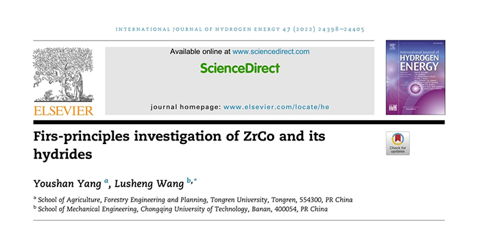 近日,beat365官网杨友山老师在金属储氢领域取得了重要研究进展,相关成果以“ZrCo及其金属氢化物的第一性原理研究”为题发表在中国科学院2区期刊《国际氢能源》上。