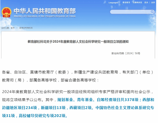 【学术成果】beat365官网喜获两项2024年教育部人文社会科学研究一般项目立项