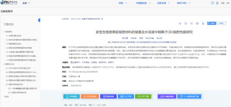 2024年11月,beat365中国唯一官网生物资源综合利用与开发课题组发表的研究论文《新型生物质果胶吸附材料的制备及水溶液中铜离子(Ⅱ)吸附性能研究》,由杂志社推荐入选中国科协“科创中国”科技期刊双语传播工程平台。2022年,该研究论文发表于中文核心期刊《化学试剂》,且该论文于2024年被《化学试剂》期刊评为优质论文。