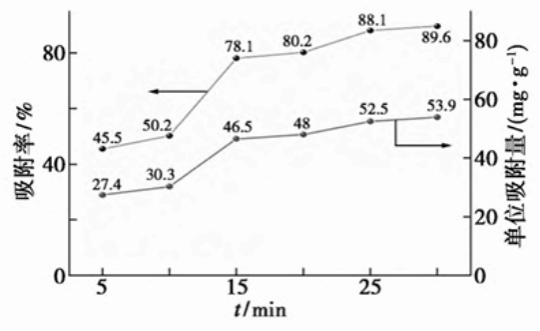 图4 果胶碱化时间对铜离子的吸附效果影响