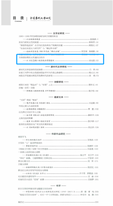 beat365官网孙向阳教授在重要期刊《中国当代文学研究》发表研究论文