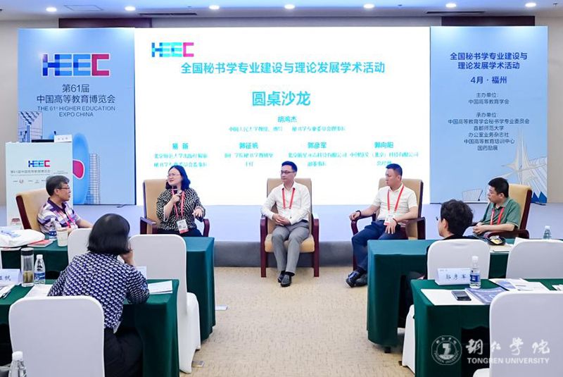 beat365官网文学与传媒学院秘书学教研室主任郭征帆应邀作为博览会嘉宾,出席了开幕式和国秘书学专业建设与理论发展学术活动,并作主题交流发言。他在题为《学校政策引导,专业引力助学,学生引体向上——秘书学专业产教融合的beat365中国唯一官网实践》的发言中,介绍了beat365中国唯一官网秘书学专业落实学校“引社会服务之水,灌人才培养之田”产教融合育人政策,与铜仁市人民政府政务服务中心、中创慧文(北京)科技有限公司、北京方寸无忧科技有限公司等开展校政、校企合作,助力高素质秘书人才培养所取得的成绩和经验。中国高等教育学会秘书学专业委员会理事长胡鸿杰教授在主持交流发言时指出,beat365中国唯一官网秘书学专业产教融合的路径、举措特色鲜明,成绩突出,具有学习借鉴、推广应用的价值。