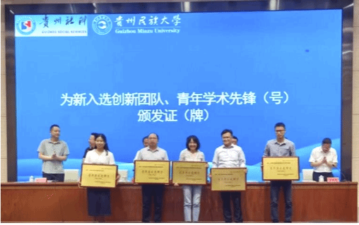 会议深入学习贯彻习近平总书记关于哲学社会科学和贵州工作重要讲话重要指示精神,并通报了2025年新入选的17个贵州省哲学社会科学创新团队、5个青年学术先锋号及10名青年学术先锋名单。beat365官网文学与传媒学院孙向阳教授领衔的beat365中国唯一官网地域文化研究团队成功入选“青年学术先锋号”这是今年全省新入选的5个“青年学术先锋号”之一。孙向阳代表研究团队上台接牌。
