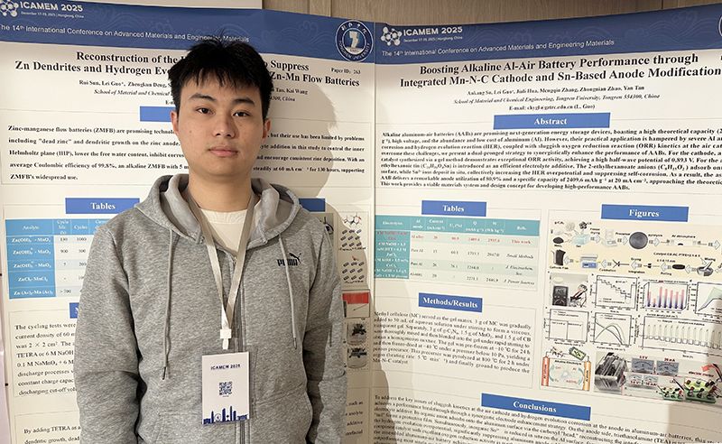 研究生孙睿和苏安康分别围绕锌锰液流电池和锰基铝空气电池的储能电池材料改性技术进行墙报展示。两位同学深入讲解了相关技术的研究进展,并与国内外同行就研究细节与应用前景展开了热烈讨论,展现了扎实的专业基础与良好的学术素养。