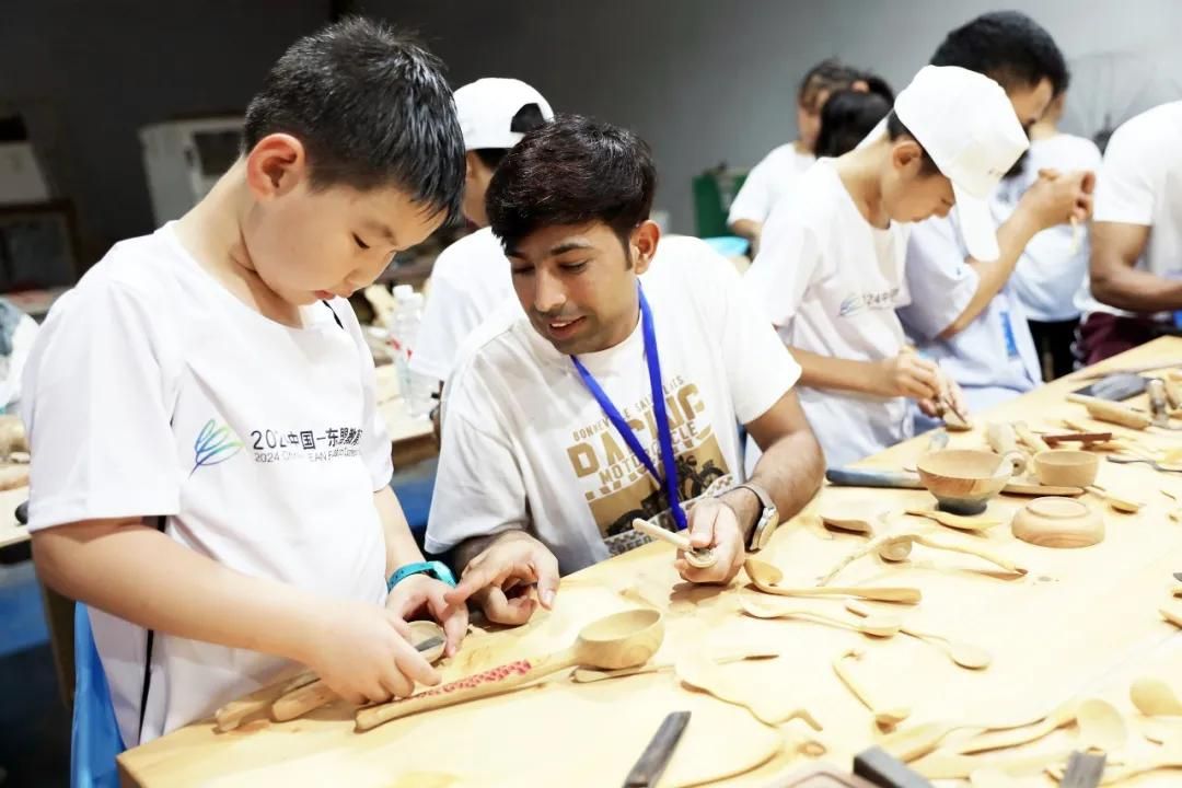 在beat365官网的校园内,小朋友们与国际学生、志愿者们一起参观了校史馆,了解学校的发展概况,切实感受大学氛围;在美术楼的全省非遗传承人群技艺培训基地,聆听了授课教师现场讲解木雕所用木材知识,以及每件作品背后的文化故事后,一起使用雕刻工具,亲身体验木雕技艺的魅力,近距离感受中华文化的独特魅力;在体育馆,现场观看了学校舞龙队与国际学生共同的舞龙舞狮表演,体验学习舞龙舞狮表演中涉及的各种动作和手势及舞龙舞狮的历史文化背景,通过模仿和练习,逐渐掌握了舞龙舞狮的技巧,伴随着欢快的鼓点,沉浸式感受我国传统非遗民俗魅力。