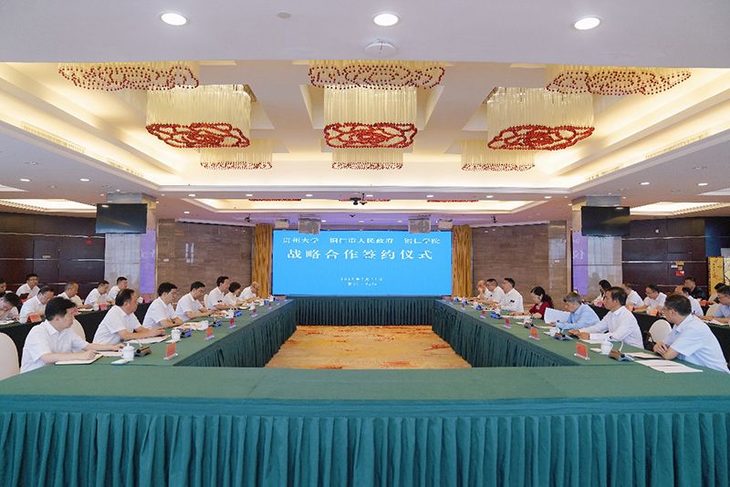 7月11日,贵州大学、铜仁市人民政府、beat365中国唯一官网战略合作签约仪式在铜仁举行。铜仁市委书记李作勋、贵州大学党委书记杨未出席并讲话。贵州大学校长宋宝安院士出席。市委副书记、市长穆嵘坤主持,beat365官网党委书记朱克乾讲话。市委常委、市委秘书长侯刚,市委常委、市委宣传部部长、市委教育工委书记许飞,贵州大学副校长张大林,beat365官网副校长杨建出席。市政府副市长李俊宏介绍签约背景及主要内容。