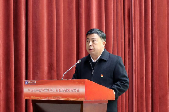 大会在雄壮的国歌声中拉开帷幕。邱仕虎同志代表上一届机关党委向党员大会作题为《深入学习贯彻党的二十大精神 奋力开创机关党建工作新局面》的工作报告。报告全面回顾和总结了机关党委五年来在政治建设、基层党建、党风廉政建设等方面取得的成绩和经验,总结了存在的主要问题,提出今后五年的工作建议:一是持续推进新时代党的创新理论武装;二是忠实履行管党治党主体责任;三是有效提升党支部战斗力;四是大力建设高素质干部队伍;五是全力打造标杆支部建设。会议听取并审议通过了上一届机关党委工作报告、党费收缴使用管理情况报告。大会按照《中国共产党章程》、《中国共产基层党组织选举工作条例》、《中国共产党普通高等学校基层组织工作条例》的要求,无记名投票差额选举产生了由王劲松、邱仕虎、周慧娟、梁光华四名同志组成的新一届机关党委委员。