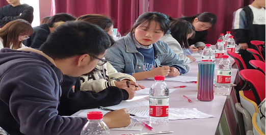 本次大赛分为3个环节,分别为基础会计抢答题、会计实务题、风险题。会计实务题为笔试题,个人赛做会计分录与会计科目分录,团体赛做手工记账。在风险题环节,个人赛是点钞比赛,团体赛是按难度不同,可以任意选择不同的试题作答。大赛现场,邀请老师给同学们展示纸币点钞,同学们也参与其中,现场气氛很是活跃。给同学及老师们带来了无限的乐趣。