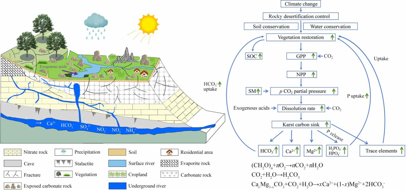 本项研究展现了beat365官网在喀斯特生态恢复与岩溶-植被碳循环领域持续增强的科研能力与学术影响力。下一步将结合多源遥感模拟反演与野外监测,构建基于空间像元尺度的外源酸作用下岩溶地质碳汇反演模拟,并耦合喀斯特区植被碳汇-土壤碳汇及脱气效应,深化喀斯特生态系统碳源汇全过程机制研究与碳中和系统评估,为喀斯特及全球生态治理提供科技理论技术支撑