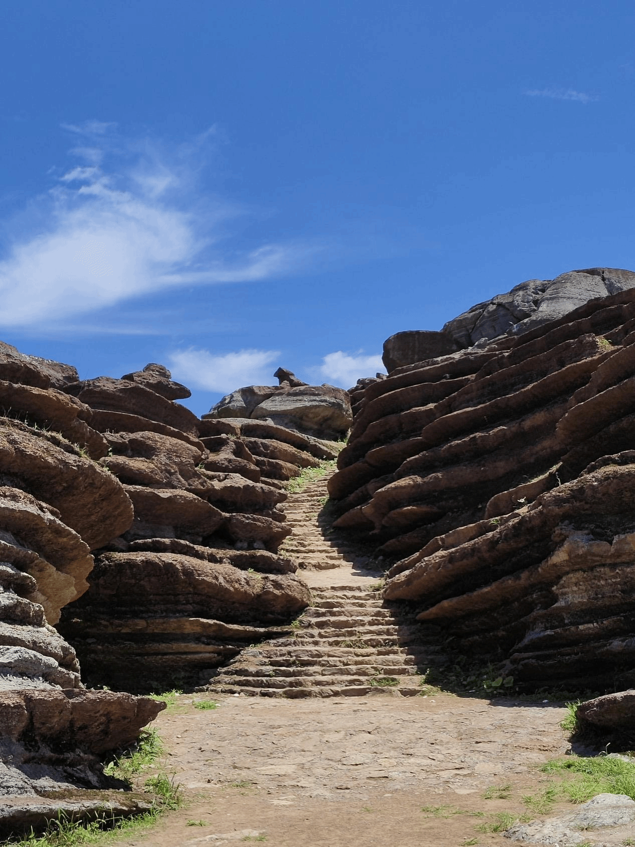 同学们深入松桃县腊尔山红石林景区。发现其岩层由奥陶纪海洋沉积物经地壳抬升和流水溶蚀作用塑造而成,呈现出层叠交错的红色丹霞石壁与纵横通道。师生们通过实地观测探究红石林的矿物成分(硅、钙、铁等)及风化特征。考察中,师生们还关注了当地旅游业对乡村经济的带动作用。自2015年偶然发现后,通过旅游开发,村年旅游收入已突破80万元。