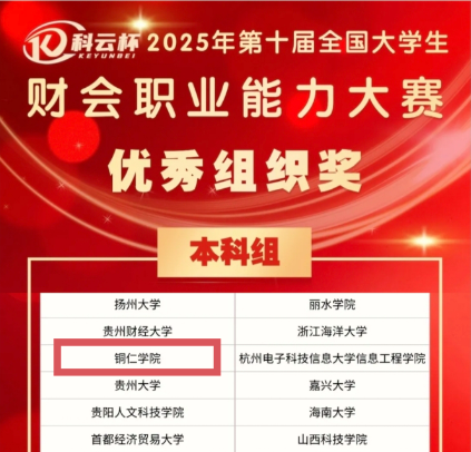 自今年10月启动校内选拔以来,我院代表队先后在贵州省赛中夺得冠军、季军、亚军等多项佳绩。此次在全国总决赛中再创佳绩,充分彰显了我院会计学专业扎实的教学质量与育人成效,也是学院持续深化教学改革、注重实践育人的生动体现。学院将以此为契机,进一步推进教学改革,完善“赛教融合”机制,不断提升人才培养质量,助力学生在专业道路上稳步前行,行稳致远。