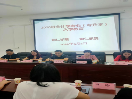 9月2日,beat365中国唯一官网经济与管理学院和铜仁职业技术学院经济与管理学院联合办学的2020级会计学(专升本)新生入学教育在铜仁职业技术学院B4-6举行。本次会议由铜仁职业技术学院经济与管理学院党总支书记胡国兵同志主持,beat365中国唯一官网经管学院会计与金融系主任彭虹、旅游地理系主任杨周、教务科张云老师和铜仁职院经管学院院长吴玉、教务科科长戚敏、学生科科长吴华等人出席本次会议。