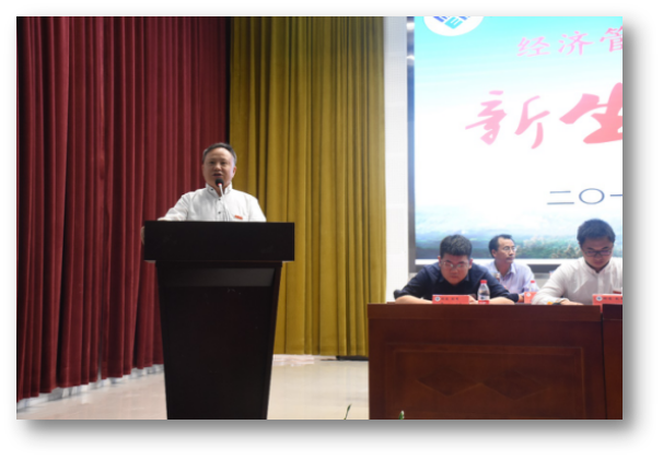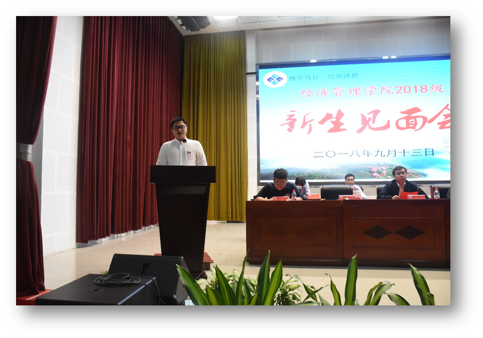 为了加进2018级新生与老师的交流与沟通,为了增加老师对同学们的了解,同时也为了让新生对本专业以及今后的大学生活有初步的认识。9月13日早上,经济管理学院2018级新生见面会在人文生态馆举行。出席本次见面会的有经济管理学院副院长周贤贵、经济管理学院党委副书记田春燕等8位学院领导。各专业辅导员代表以及2018级的全体新生参加了本次大会。